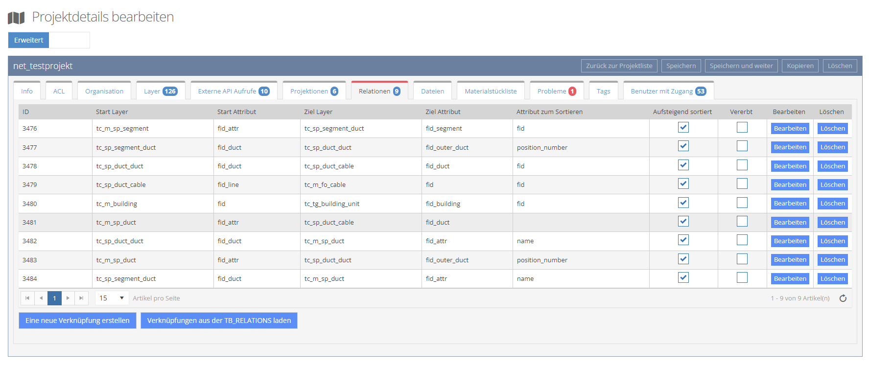 Under the “Relations” tab, the individual connections can be edited. A relation consists of the following fields: