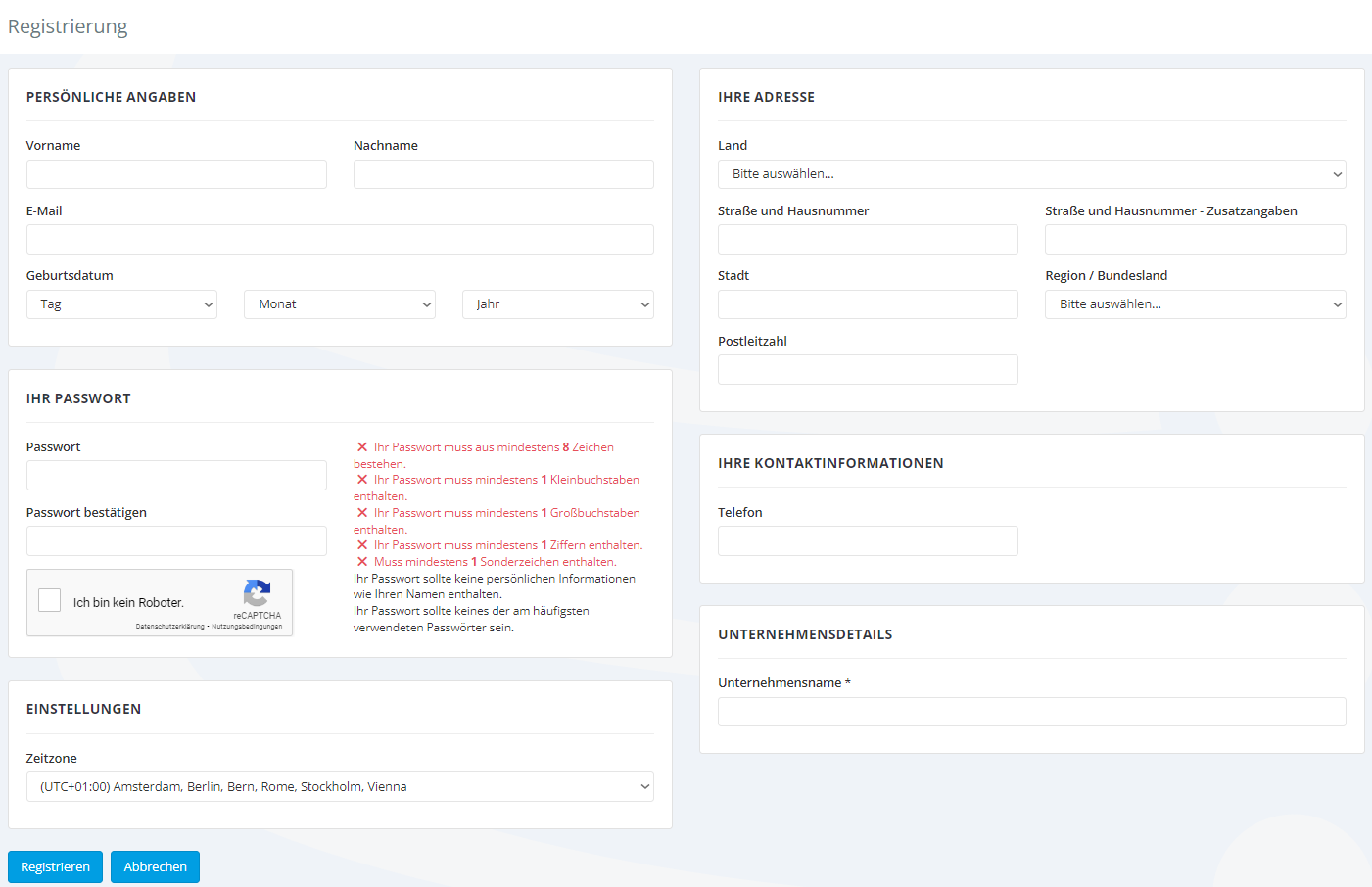 After the prospective NET Cloud user clicks on the provided link, they will be directed to a form where they can enter all relevant information. This form also allows them to set their password.