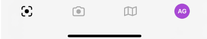 The main screen consists of the project selection, a list of all recorded scans or taken photos, and the navigation bar.