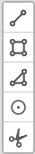 Line, polygon and point objects are drawn using the buttons on the left-hand side. This includes routes, building edges, building ends, fittings, sleeves, NVTs, PoPs, ball markers and pipe ends. After selecting the appropriate geometry, the layer must be selected to start the drawing mode. For more information, see Drawing and editing. The scissors are used to split line objects. Linked documents are transferred, but not subordinate objects such as pipes. |
