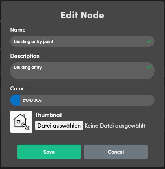 Each point requires a name, a description, color, and thumbnail. Existing point types can be edited by clicking on their name and editing its information.