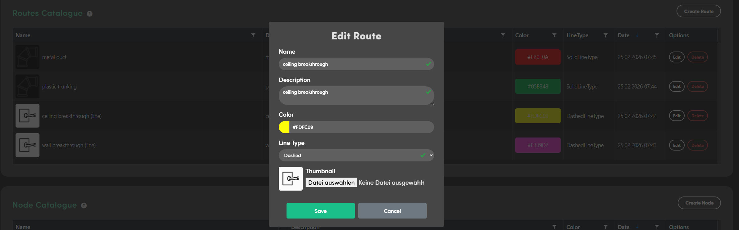 In the catalogue admin all point and route elements can be defined. These can be placed during scanning in the NET Inhouse App.