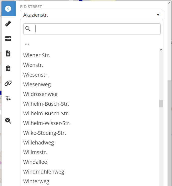 Wenn die Straßennamen im Projekt gepflegt sind, stehen diese nun als Dropdown zur Verfügung.