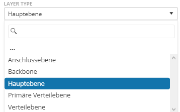 | Lookup-Layer Attribut | This attribute references another domain table, for example the assignment of id_layer_type to the possible types (connection level, backbone, main level, distribution level). | ||